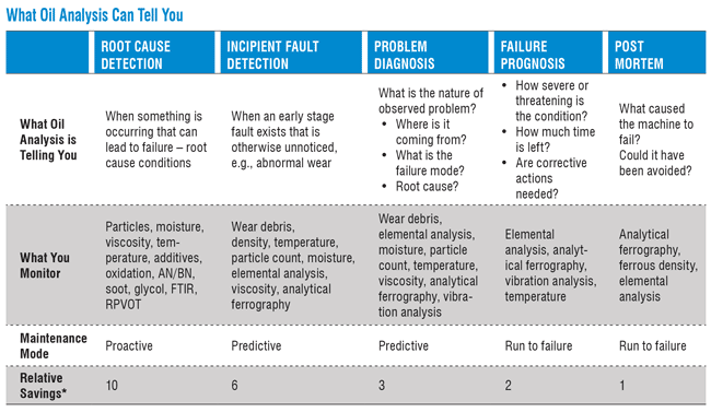 Most used oil analysis labs offer a list of tests from which users are expected to choose a test slate that will be appropriate for their equipment. If the correct tests are not selected, vital early warning signals and opportunities for maintenance cost savings can be missed. Recommended test packages for different equipment should include both routine and exception testing for a two-dimensional approach to oil analysis.